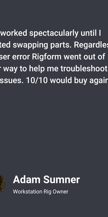 At Rigform, your gaming rig scales with you. Our Mid-Tier builds are perfect for reliable, fluid gameplay at 1080p and 1440p. If you're looking for a boost, the High-Tier offers even higher frame rates and the capability to handle some 4K gaming. And when only the best will do, the Ultra-Tier delivers uncompromising performance—fully equipped for smooth, high-fidelity 4K, while breezing through lower resolutions.